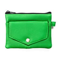 Malý zelený kožený prívesok na kľúče so zipsom na prednej strane