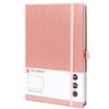- Ružovo sfarbený zošit s potlačou v riadkoch. Vďaka minimalistickej, elegantnej tvrdej väzbe je ideálny do kancelárie aj na univerzitu. Vybavený elastickým uzáverom, ktorý zabraňuje náhodnému otvoreniu poznámok. Formát A5.