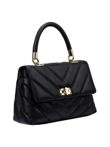( počet produktov: 178 )Dámska kožená kabelka Luka 20-091 v štýle čiernej aktovky s prešívaným vzorom a zlatým kovaním