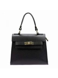 Čierna kožená kabelka Luka 20-057 v aktovkovom štýle s odnímateľným popruhom a zlatým kovaním