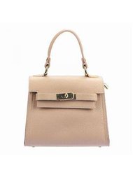 Dámska kabelka Luka 20-059 DOLLARO z prírodnej kože v tmavej ťavej farbe s prídavným remienkom a zlatým kovaním