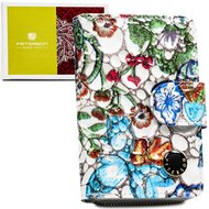 Dámska kvetinová peňaženka z prírodnej a ekologickej kože so zapínaním na cvok a zips - Peterson