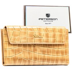 Dámska béžová peňaženka z ekologickej kože s potlačou krokodílej kože - Peterson