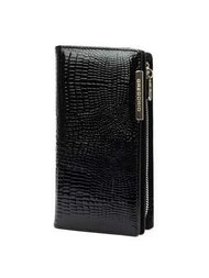 Dámska peňaženka Pierre Cardin z prírodnej kože vo farbe Black Leaves s horizontálnym dizajnom a ozdobnou sponou