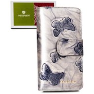 Veľká vertikálna dámska kožená peňaženka striebornej farby s vyrazenými motýľmi - Peterson