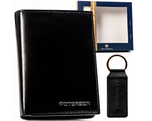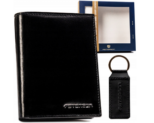 Darčeková súprava: stredná kožená pánska peňaženka a prívesok na kľúče Peterson