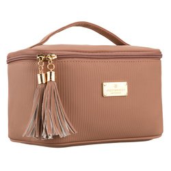 Béžový a hnedý toaletný kufrík zo syntetickej tkaniny so zipsom - Peterson