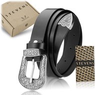 ( počet produktov: 4 )Čierny Dámsky Kožený Opasok Stevens s Retro Vintage Striebornou Prackou